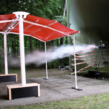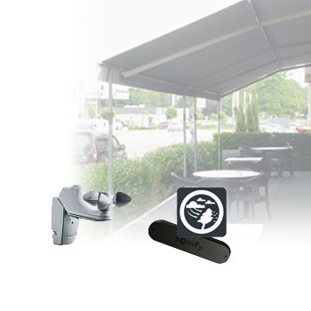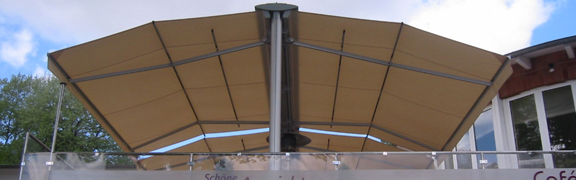 Der Wasserablauf wird bereits ab einer Neigung des Tuchs von 5° garantiert. Alle belasteten Teile sind aus speziell gehärtetem Aluminium gefertigt. Die Garantie für hohe Sicherheit. Mit der Gastro Sunrain machen Sie Ihre Außengastronomie weitgehend vom Wetter unabhängig.