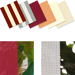 Es stehen Ihnen mehrere Behangarten zur Verfügung. Sie können ein Acryltuch wählen oder Sie entscheiden sich für ein Gewebe mit mehr Durchsicht. Mit dem Sunvision-Gewebe lassen sich sogar bis zu 2,5 m Tuch ausrollen. Die »gelochten« Gewebe bieten Ihnen mehr Durchsicht und ein angenehmes Licht. Das auf der Markise verwendete Precontraint-PVC ist für den Vario-Volant nicht einsetzbar.