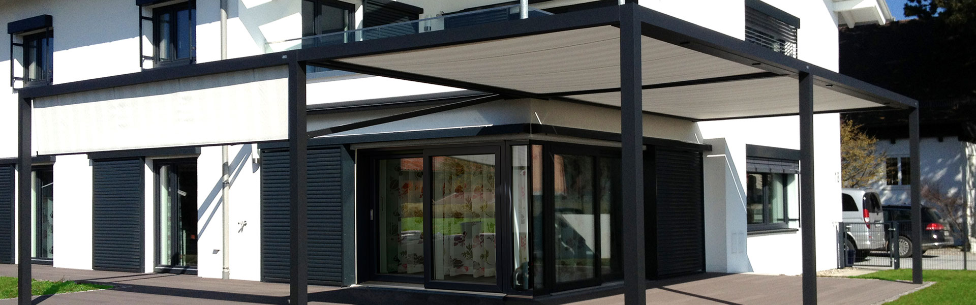 - Kombinierbar mit Senkrecht- oder Seitenmarkisen