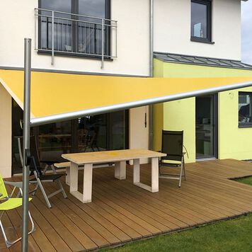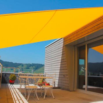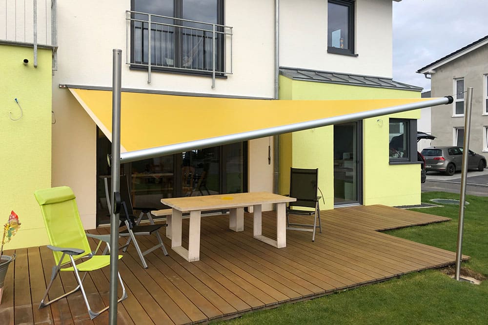 Sie ermöglichen eine Schattenfläche von bis zu 34,5 m². Das ergibt ein unschlagbares Preis- Leistungsverhältnis gegenüber klassischen Markisen oder rollbaren Sonnensegeln.