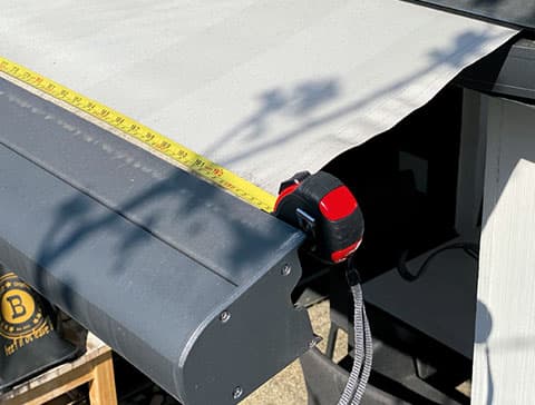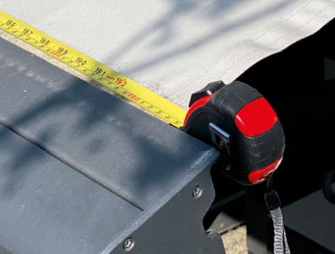 - Wir nehmen die Tuchmaße auf und berücksichtigen eventuelle Besonderheiten, die für die Konfektion des Markisentuchs relevant sind.