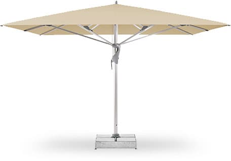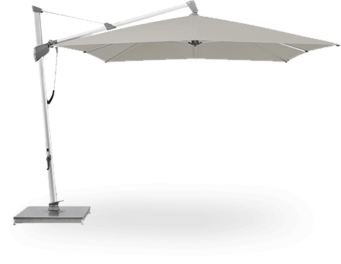 Dank moderner Materialien, ausgefeilter Mechanik und komfortabler Bedienelemente bietet dieses Schirmtyp jeden Komfort, den man sich wünschen kann. Das durchdachte technische Design macht auch große Schattenflächen für die Gastronomie möglich.