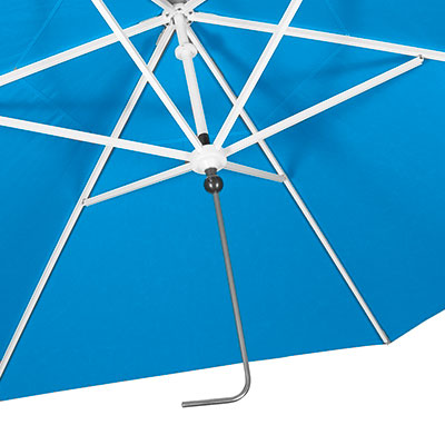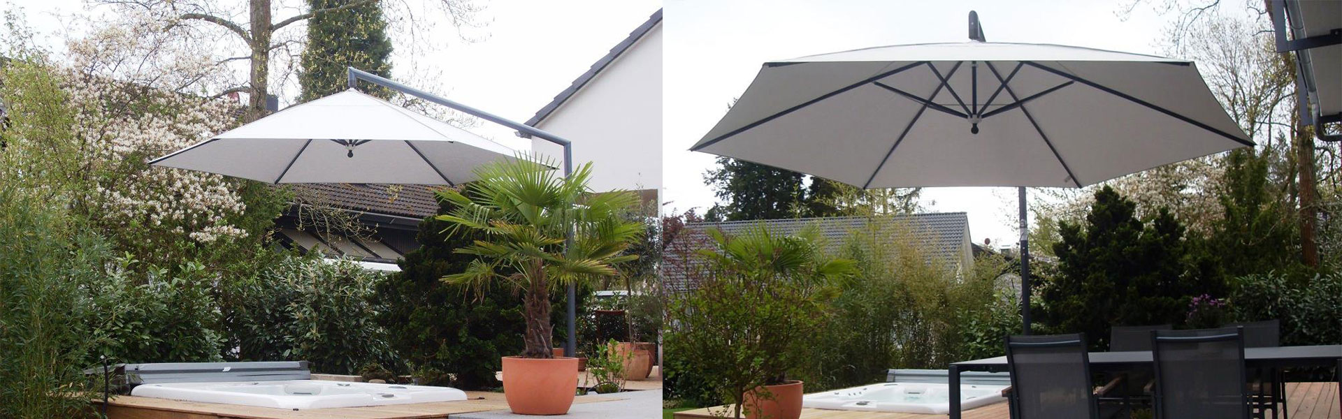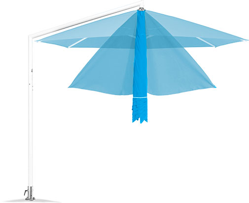 Dieser Schirm wird komfortabel und leicht mit Handkurbel geöffnet und geschlossen. Die Pendelvariante erlaubt Schrägstellung des Schirms, die mit einer leichtgängigen Feststellkurbel eingestellt werden können. Dies wird ganz bequem an der Verbindung der Stützstreben erreicht.