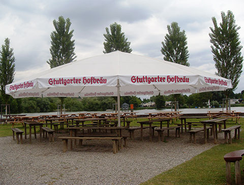 Gastroschirme sind teils größten Anforderungen,was Material und Verarbeitung angeht, ausgesetzt. All unsere Lösungen sind wartungsarm, aber Komponentenwie Bespannungen haben eine begrenzte Einsatzzeit. Auch hier unterstützen wir Sie.