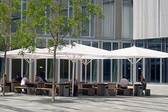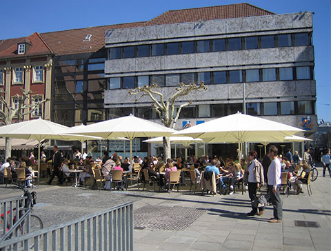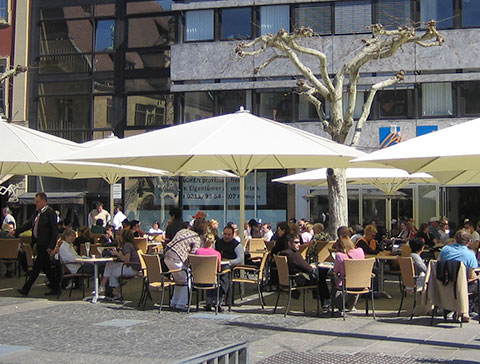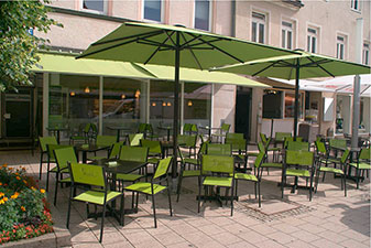 Straßenbestuhlung mit Filius oder einem Ampel-schirm Dacapo, Marktplatz mit Schattello oder Albatros und die Terrasse…